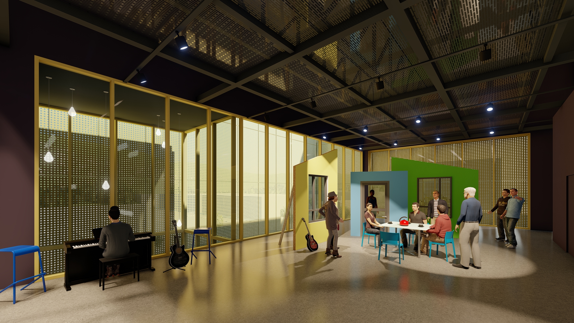 The initial phase included a full assessment of the existing facility, with programming for expanded performance spaces, audience amenities, backstage and production areas, and administrative functions. Subsequent efforts have explored a range of improvements, including a black box theater feasibility study, enhanced performer and support spaces, and community-informed planning initiatives. Most recently, the work has focused on an adaptive reuse concept that transforms an existing third-floor office suite into a flexible rehearsal and performance venue.