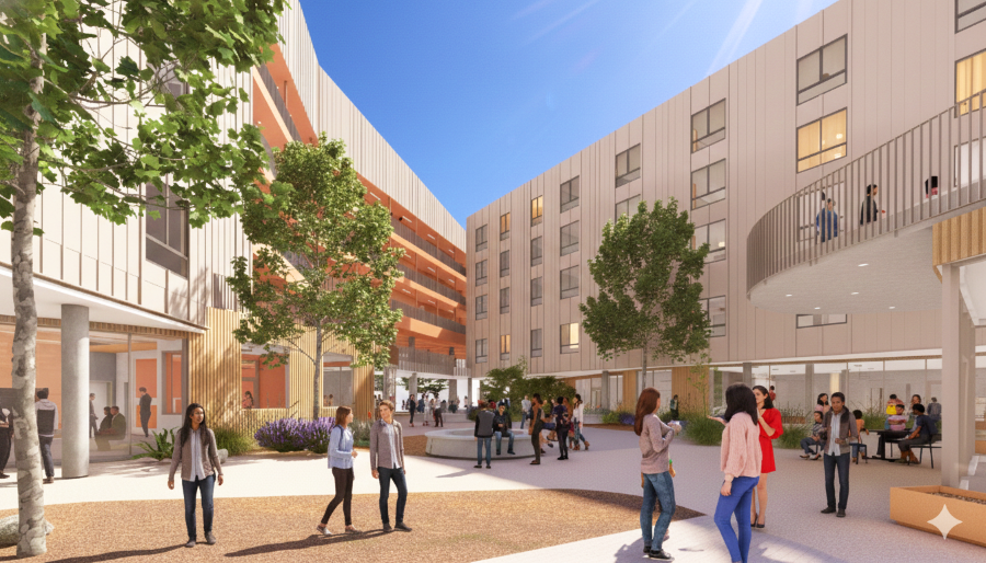 As part of a broader healthcare district, the project creates a socially woven livable place enmeshed in helping people heal through a holistic and restorative environment. Building on the social concept of “Radical Hospitality,” the project takes an expanded view of whole health and well-being to allow residents to live a fuller life. The building focuses on the principles of trauma-informed design to craft this restorative environment, providing a welcoming space for both future residents and the neighborhood community.